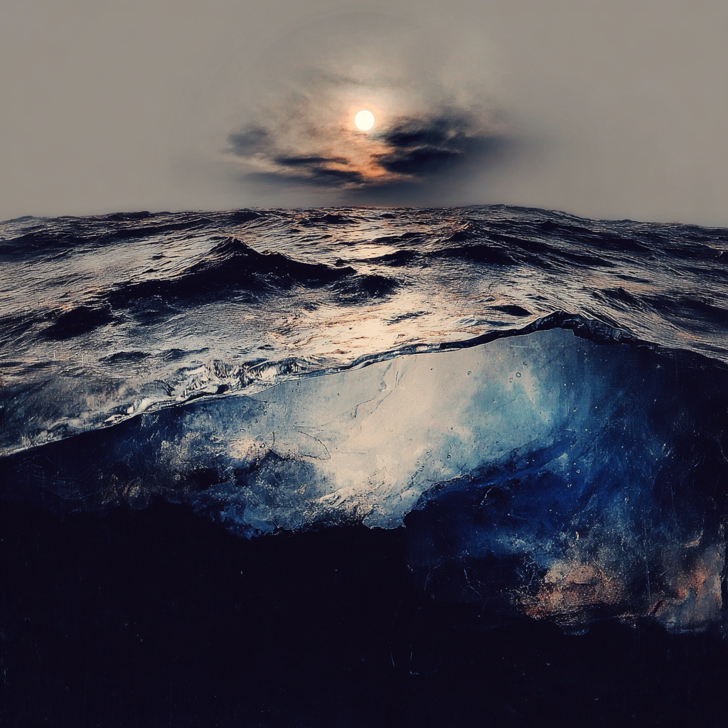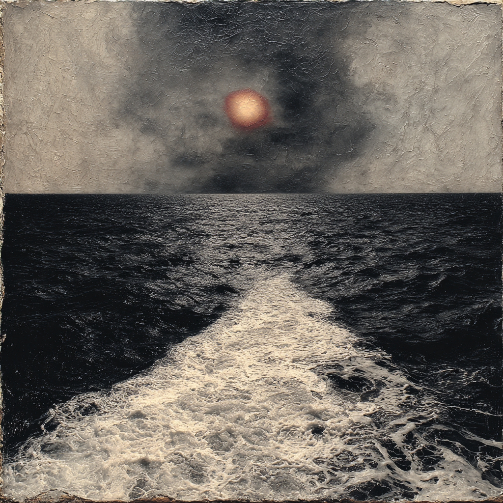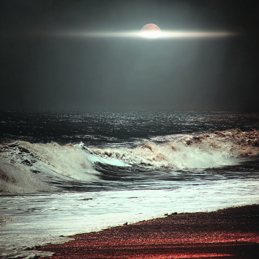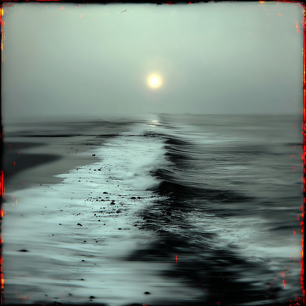The sea moves slowly under a distant light.